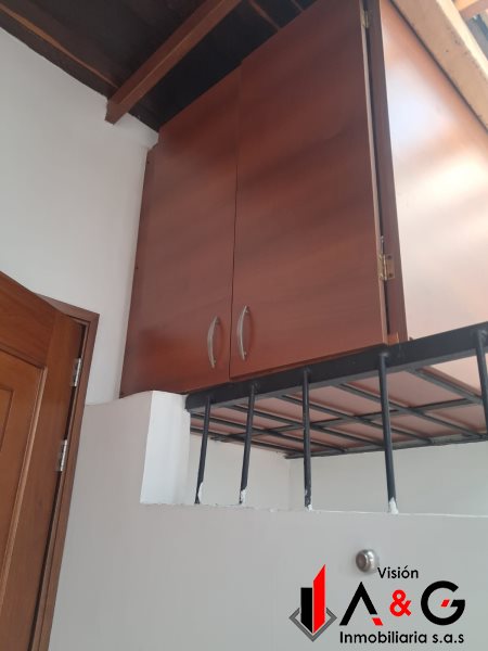 Aparta estudio 40 mts de área, sala, cocina integral, barra, zona de roas con patio y en segundo nivel habitación con closet y baño.